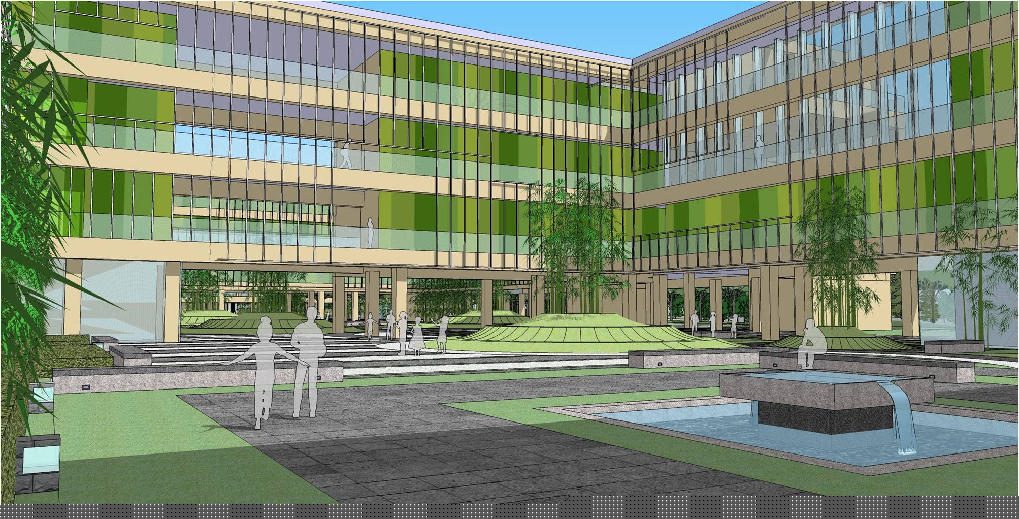 此次河源市第一高中的景觀布局優(yōu)化主要從交通流線、功能分區(qū)及展示效果三個(gè)方面考慮。