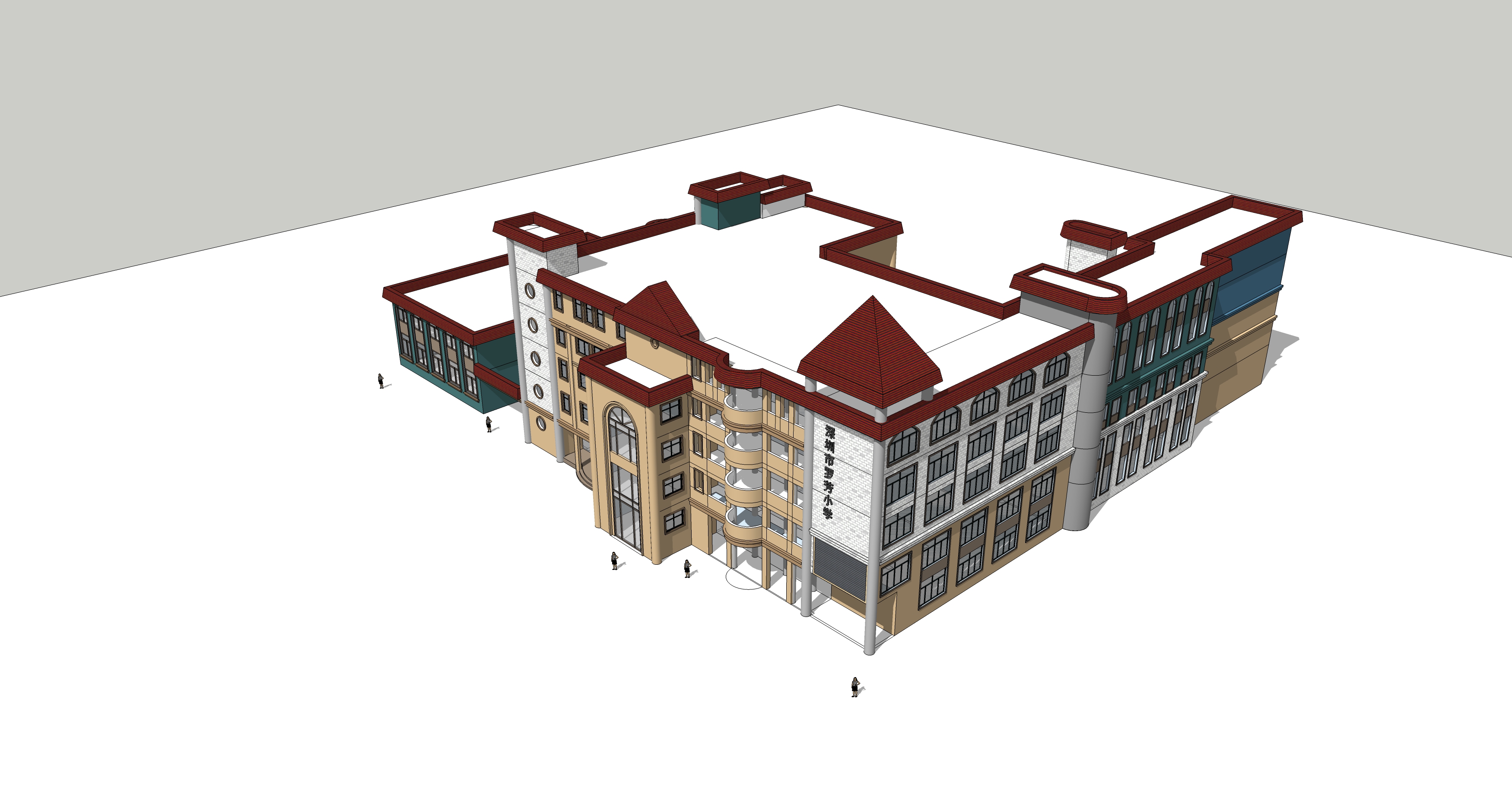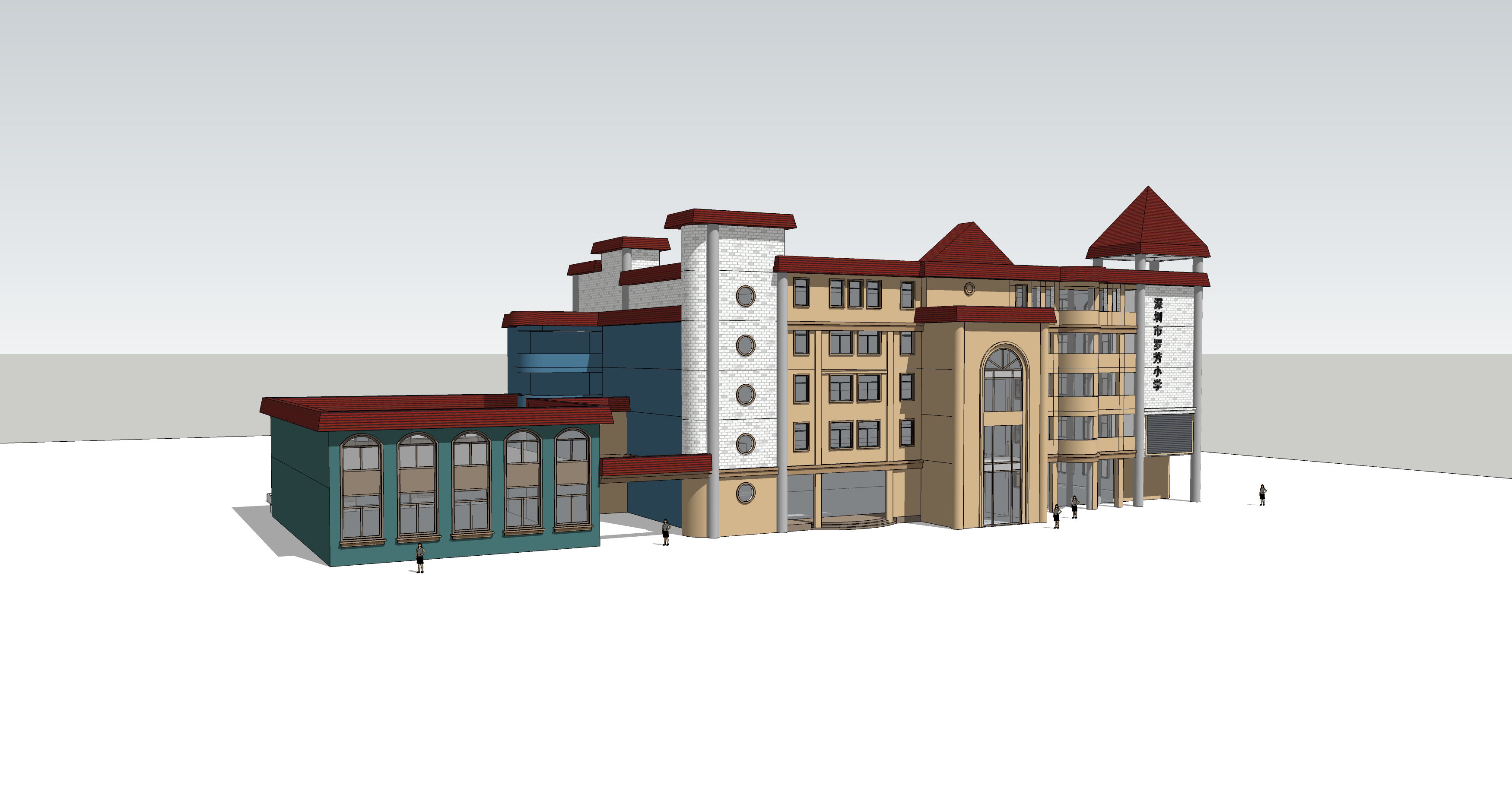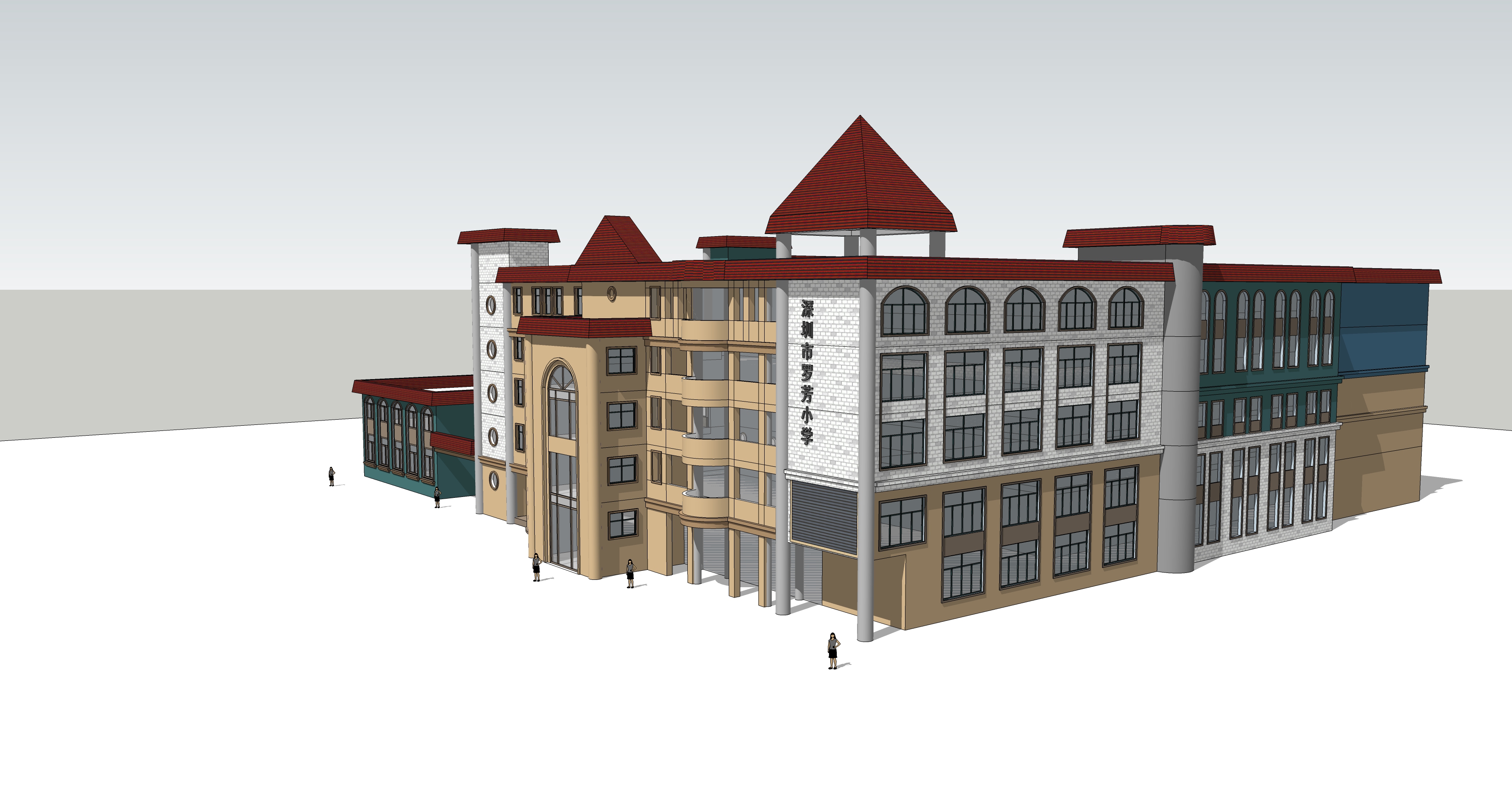 通過(guò)實(shí)地考察分析羅芳小學(xué)原建筑外立面的風(fēng)格,發(fā)現(xiàn)原建筑設(shè)計(jì)有類似城堡的感覺(jué)。于是在建筑的優(yōu)化中,設(shè)計(jì)師將“城堡”的這一設(shè)計(jì)風(fēng)格加以深化,通過(guò)復(fù)古的色彩運(yùn)用,圓柱的強(qiáng)化體現(xiàn)以及高聳的尖頂,打造出讓人耳目一新,別具特色的“學(xué)習(xí)城堡”。